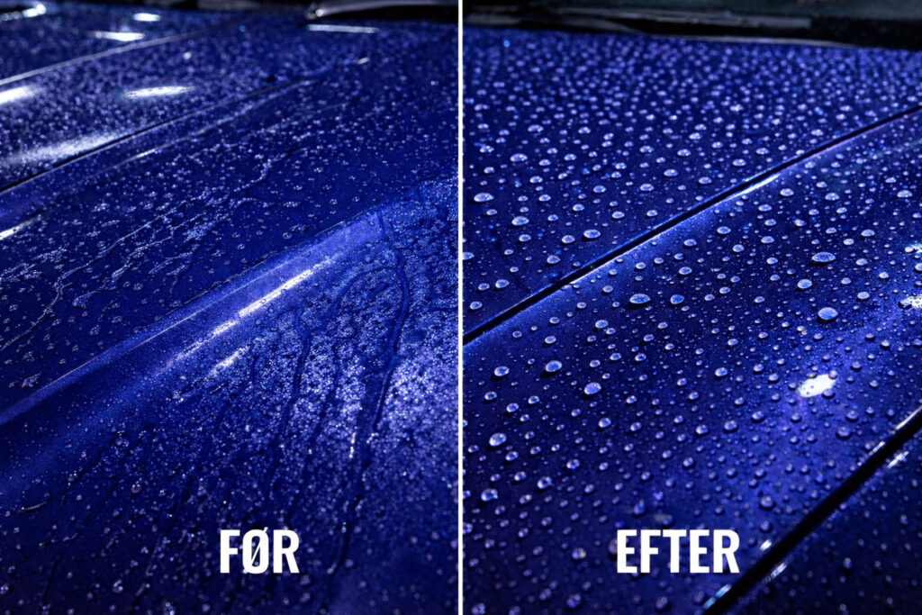 Sammenlignet med Type 1 føles overfladen en smule mindre glat, men dette opvejes af en markant højere visuel effekt og farveforstærkning. Type 2 er derfor det oplagte valg for dig, der prioriterer maksimal glans, kraftig vandafvisning og langtidsholdbar lakbeskyttelse.