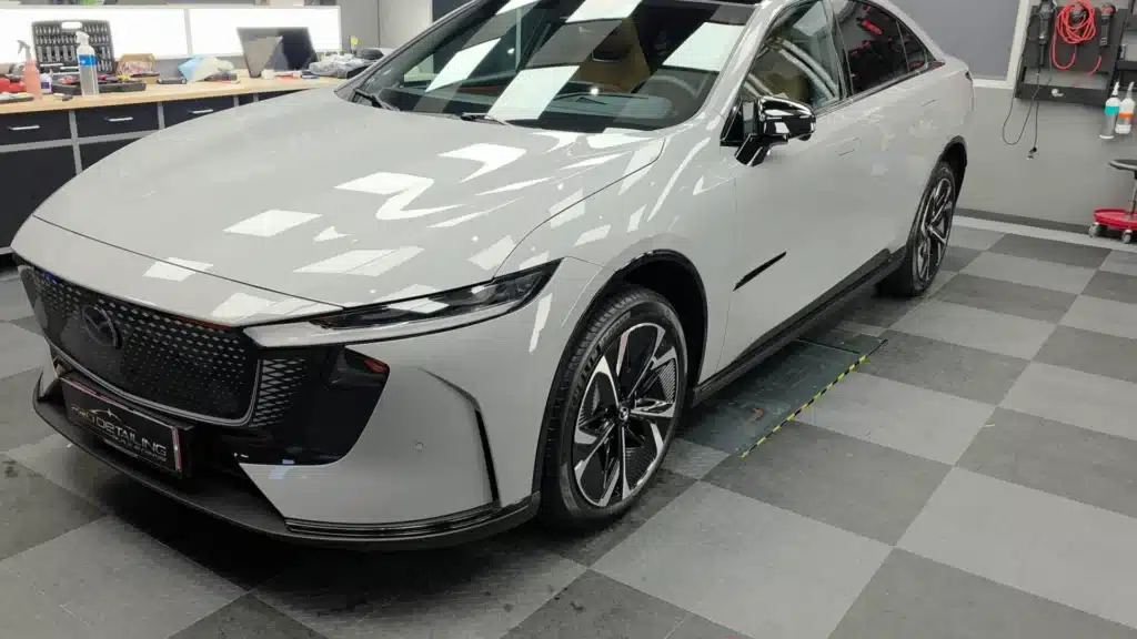 Ved vores nyvognsbehandling sørger vi for en grundig rensning af lakken helt i bund. Lakken forberedes professionelt, så den er optimalt klargjort til både keramisk coating fra GYEON og eventuel montering af XPEL Paint Protection Film (PPF).